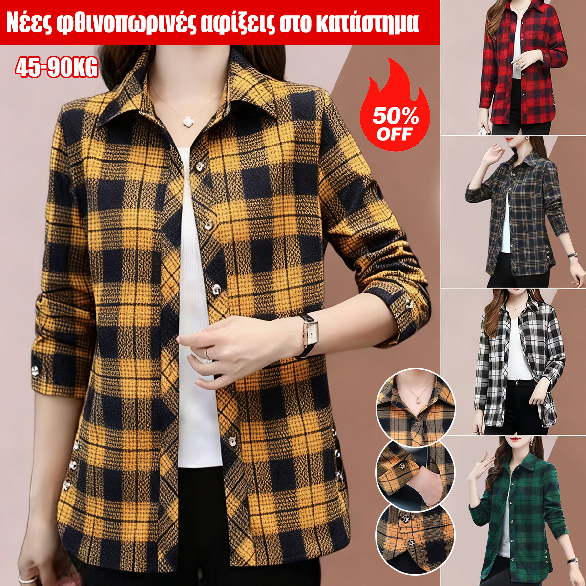 🎁【L-5XL】💕Νέα μοντέρνα και ευέλικτα φθινοπωρινά καρό πουκάμισα για γυναίκες,Μοναδικό πουκάμισο!