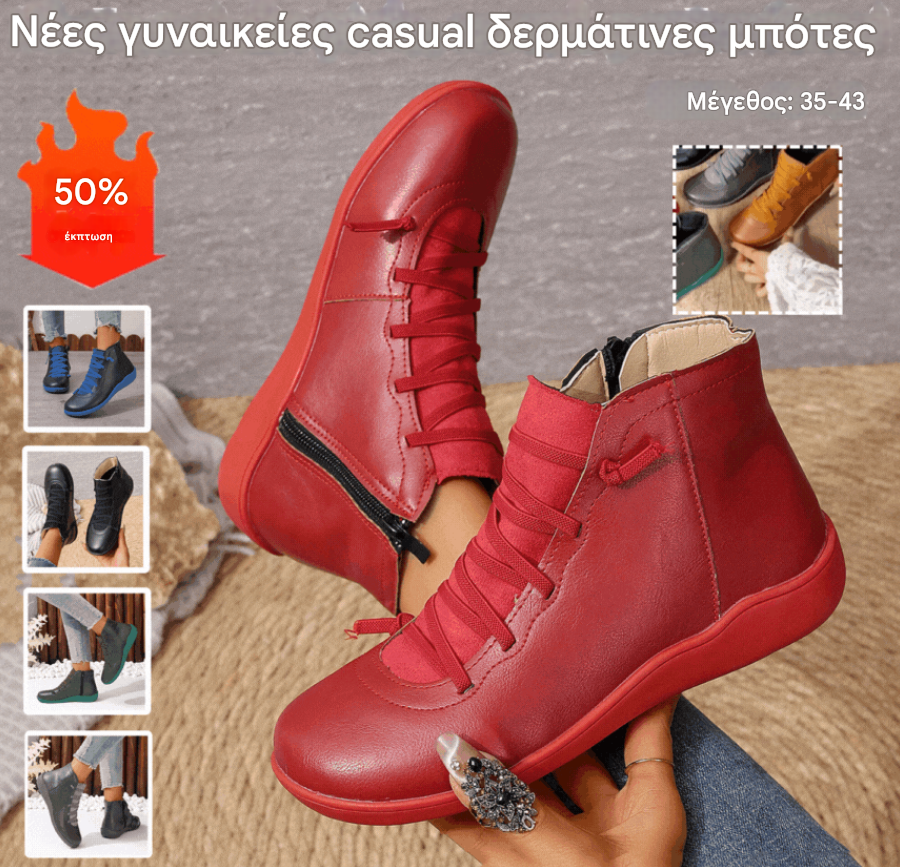 🔥🌸Κομψές δερμάτινες μπότες μεγάλων μεγεθών με άνετη και μαλακή σόλα