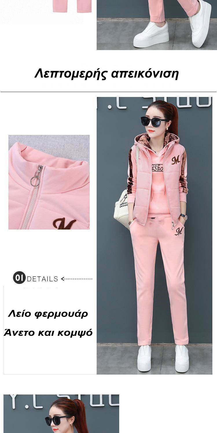 🔥【Παντελόνι + Φούτερ + Γιλέκο】Νέο Στυλ Γυναικείου Ζεστού Βελούδινου Κοστουμιού για Αθλητισμό και Αναψυχή